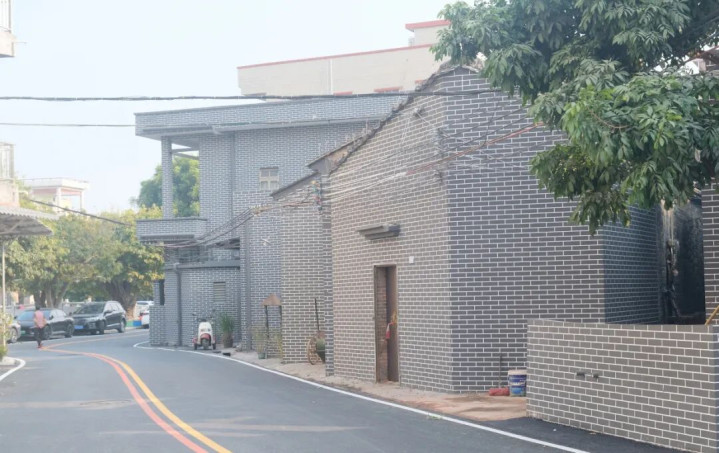 昔日坑洼的水泥路完成“黑化”升级,成为兼具颜值与舒鸿沟的迎宾大路。谈路两旁,96间农房外立面以岭南风味为魂,长入“梳妆”——青砖黛瓦的预见通过环保外墙漆与仿古砖瓷片尽心再现,一改以前杂沓。昔日旧矮墙贴上古朴砖片,化身绵延的“黛色迷你长城”,扫数行走,步移景异,惊喜不停。