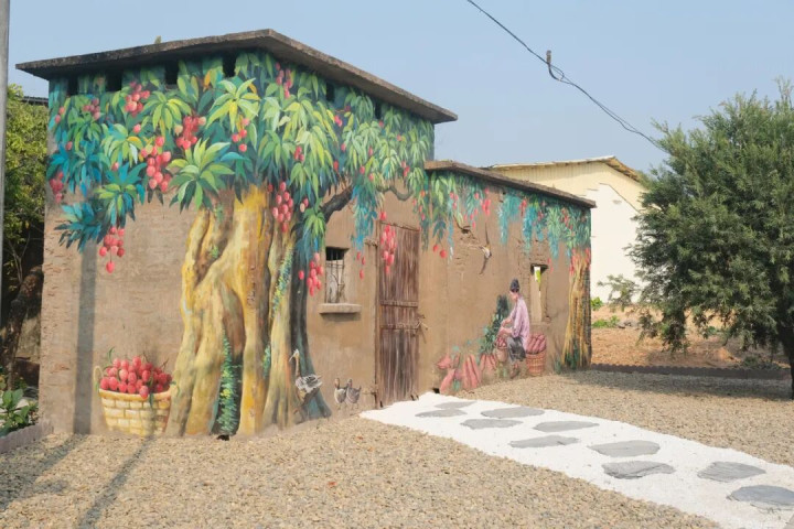 村中旧墙化身巨幅画布,三月红荔枝红艳欲滴,“小数红”番薯紫韵生香。“最早熟的荔枝,率先恋的味谈”“品小数红,访红色路”……顿挫顿挫的口号与无邪图案,将竹园村纯正的物产与深厚的红色文化(抗日强者阮海天旧地)私密“解码”,让旅客已而读懂村落的性格密码。