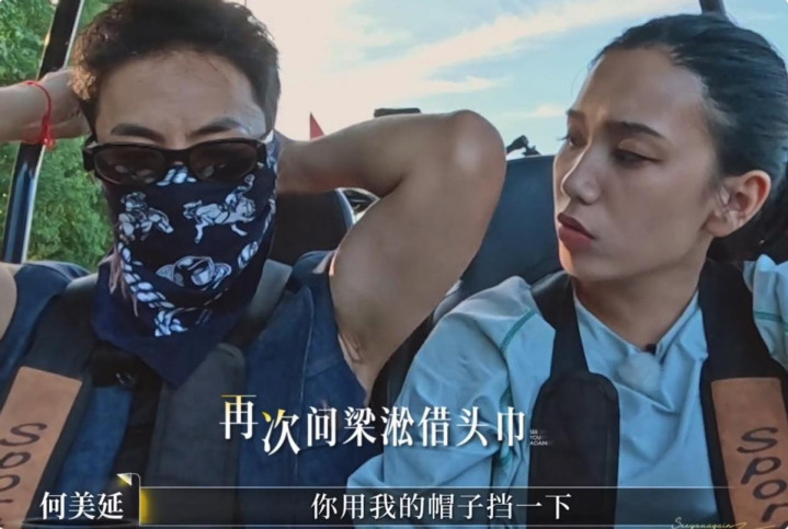 UTV越野车扬起漫天黄沙,何好意思延驾驶时无法单手扶帽,两次向梁淞借面巾挡灰,第一次梁淞暧昧着让她用帽子挡,第二次干脆凯旋拆开,根由是“这是我我方的造型”。