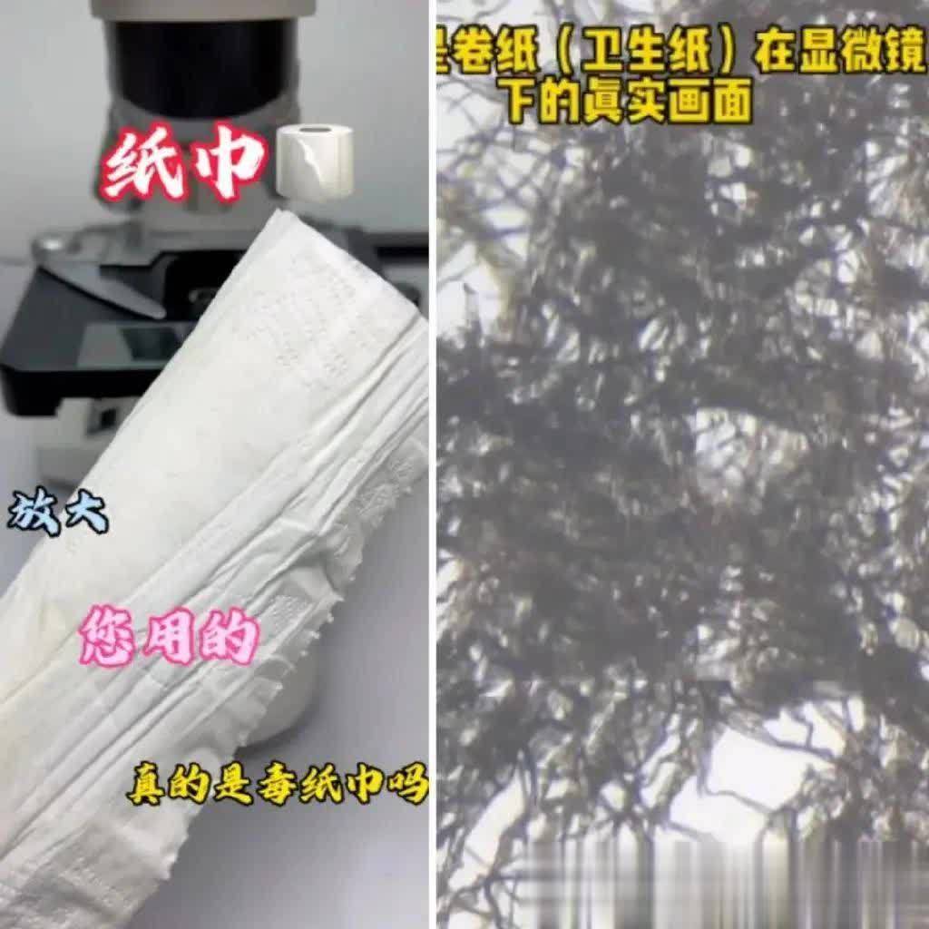 案例:擦嘴纸掉纸屑!显微镜下全是杂质! 真相:✅ 回收纸+漂白剂✓