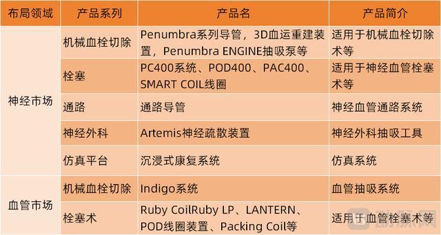 通过Penumbra的家具布局看,波士顿科学本次主要对准的是神经介入及外周介入范畴。目下,Penumbra在神经血管范畴主要提供机械血栓切除(血栓抽吸系统)、弹簧圈、通路导管等家具,在外周血管范畴主要提供机械取栓、外周栓塞系统等家具。