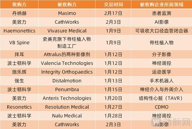 开年以来,公共医疗器械范畴已出身多笔重磅并购,如丹纳赫书记以约99亿好意思元收购患者监测企业Masimo,波士顿科学以145亿好意思元收购神经及外周介入范畴企业Penumbra。另外,施乐辉、强生、好意思敦力、拜耳等公共顶级械企均已有并购姿色完成。
